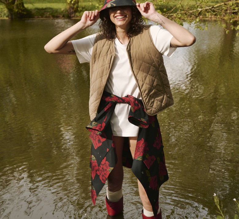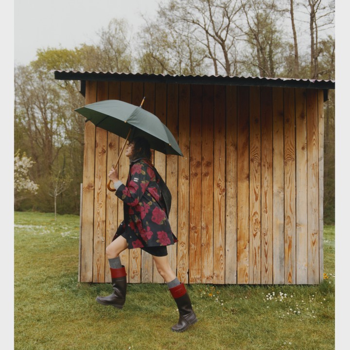 Courir en bottes à travers champs ou bien à Saint-Germain-des-Prés, se faire surprendre par une averse en achetant un bouquet, préférer un bob au parapluie toujours prêt à s’envoler… la silhouette Aigle x Rouje accompagne chaque moment du quotidien avec style.